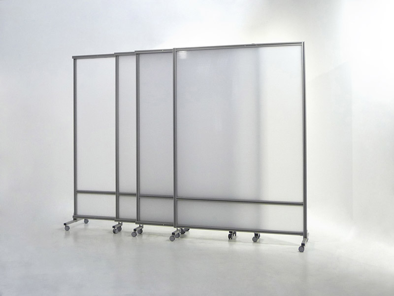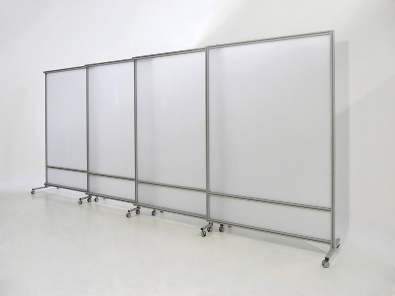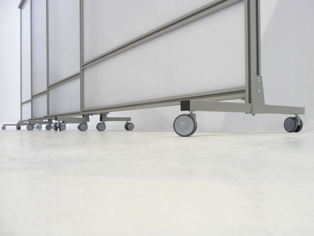 A differenza dei classici separè pieghevoli o a libro, MACRO SLIDE si apre mediante uno scorrimento lineare e fluido, grazie ad un sistema con guida e ruote pivottanti con freno che ne permettono lo spostamento controllato e sicuro. Non richiede installazioni fisse a soffitto o pavimento, ed è perfetto in tutti quei contesti dove si desidera evitare opere murarie o modifiche strutturali.
